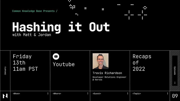 在第9集“Hashing it Out”中,Jordan,Nervos高级软件开发人员之一,与我们的生态系统开发经理Matt和DevRel工程师Travis Richardson回顾了Nervos Network在2022年取得的成就,主要集中在增长 & 开发进度。