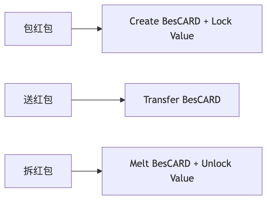 在链上,本质上是形成了一个所有权关系链,用户持有BesCARD,BesCARD持有红包内资产。