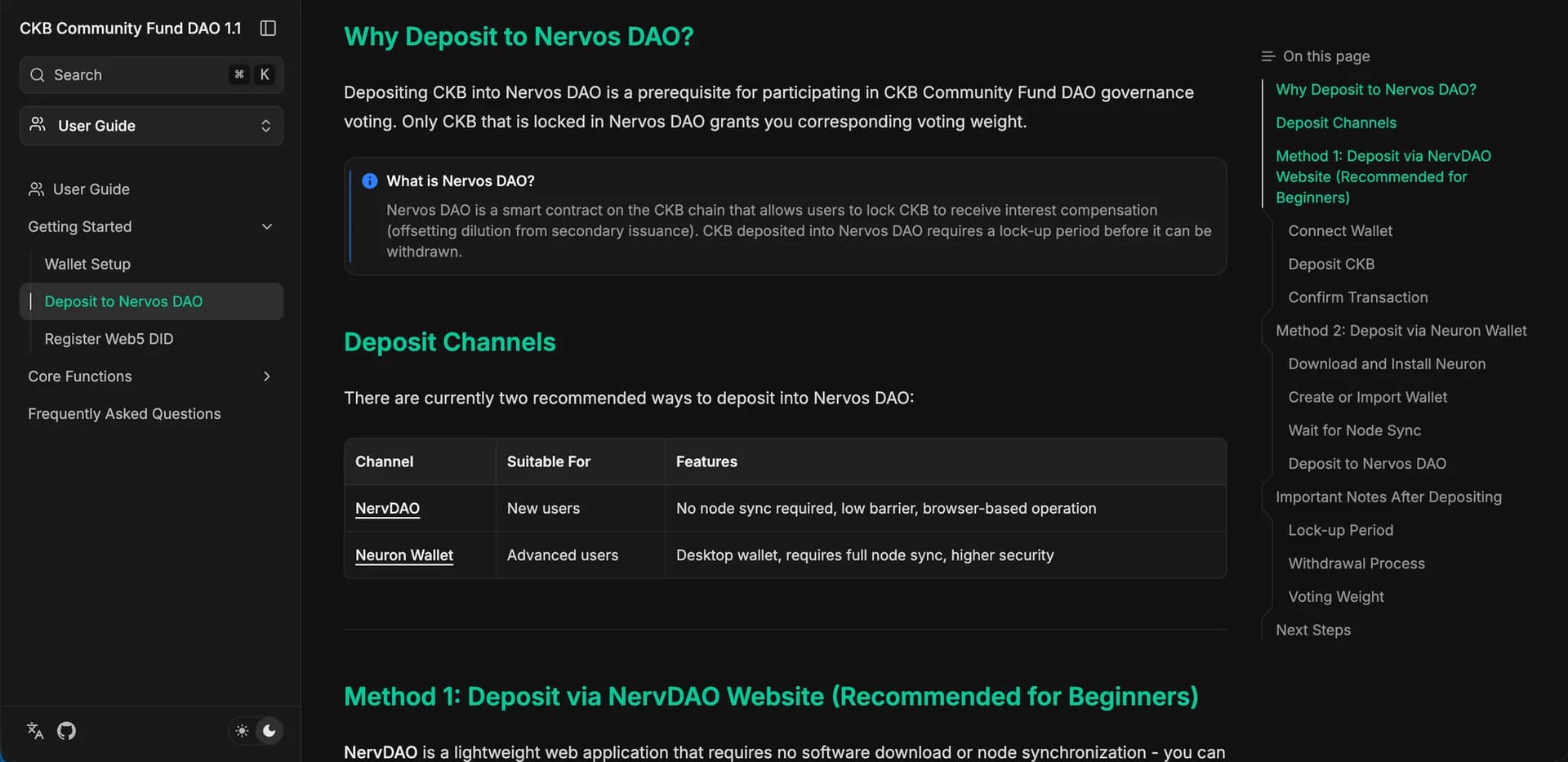 - Document prerequisites: CKB wallet setup and minimum 450 CKB requirement