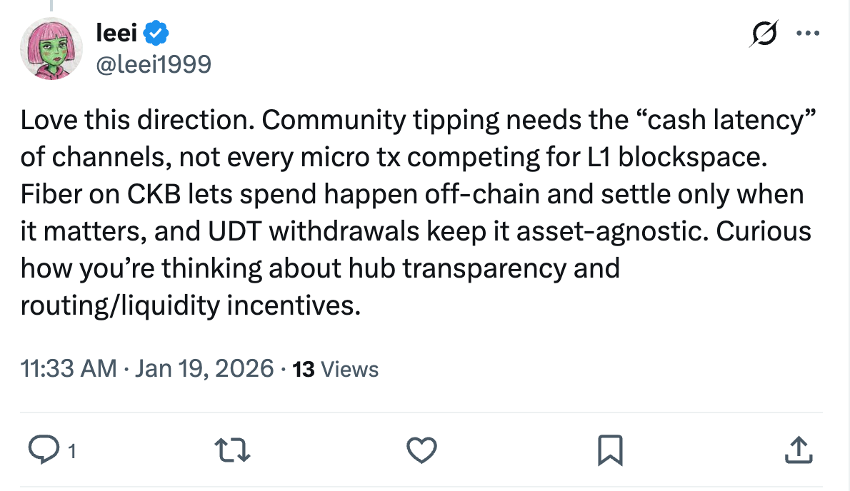 - 插件调用 Fiber Link Service:POST /tips (app_id, post_id, recipient_id, asset, amount)