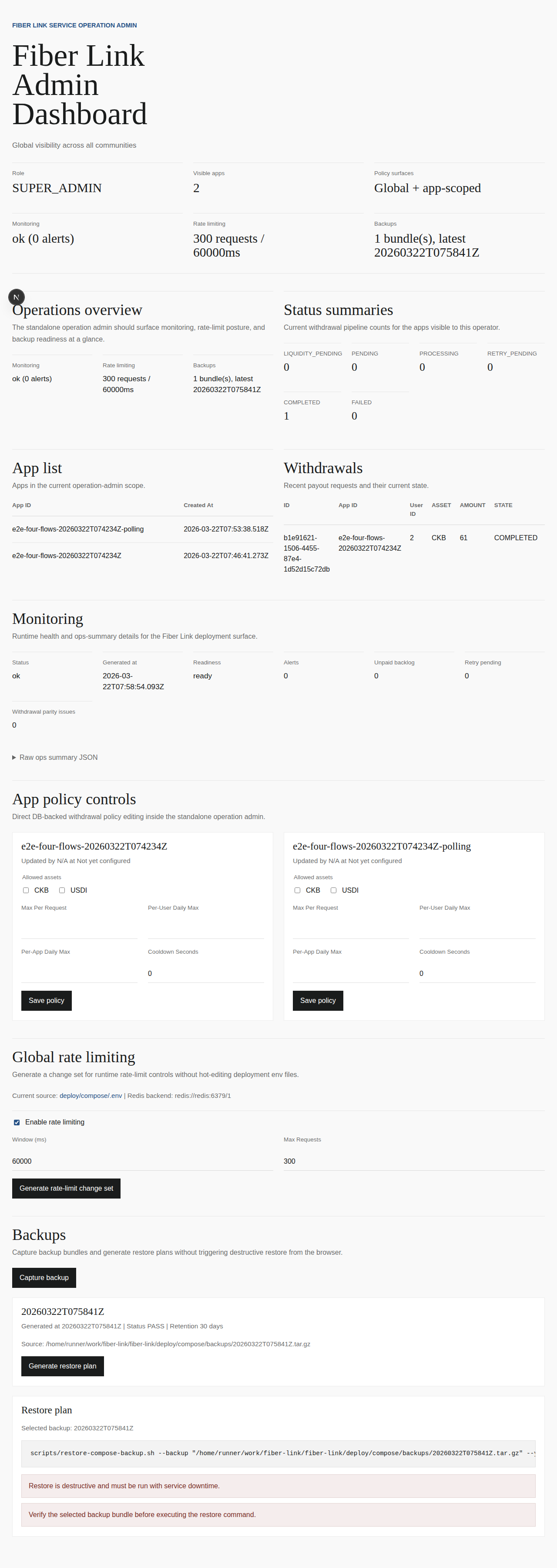 Admin controls preview (monitoring / rate limiting / backup):