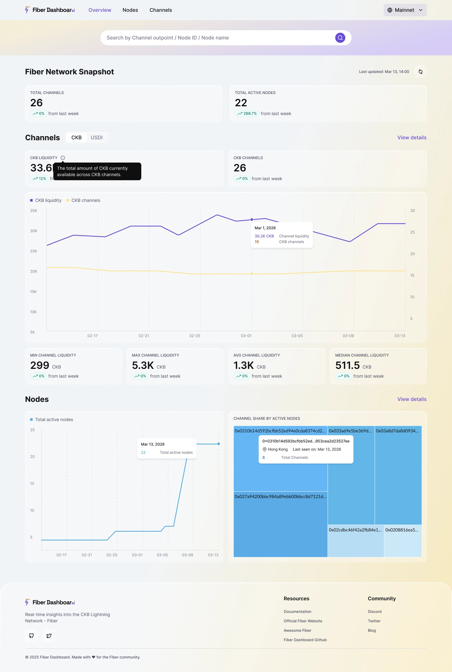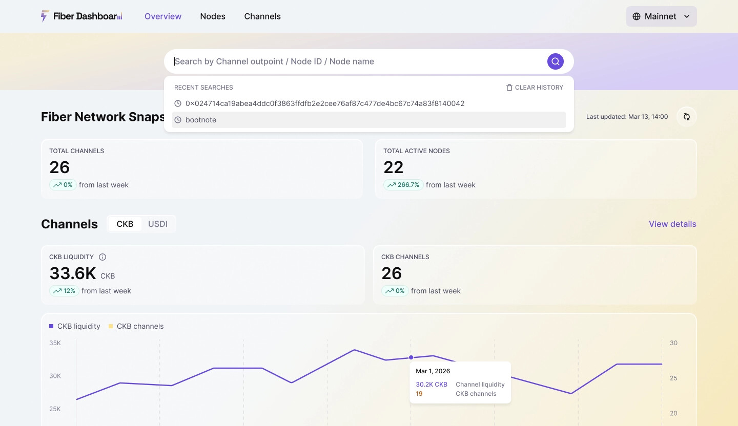 Fiber is a payment channel network built on CKB, enabling fast and low-cost off-chain value transfers. While the protocol is already live, understanding its actual state—such as how many nodes are active, where liquidity resides, and how channels open and close—has remained challenging. Relevant data is scattered across on-chain transactions and individual nodes, with no unified view available.
