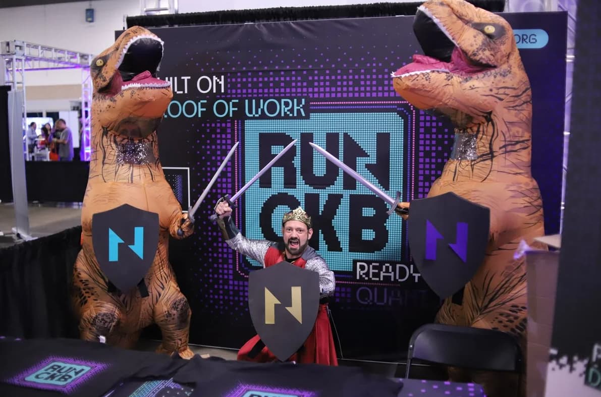 - Networking and marketing strategies. CKB community members attended conference pre- and after-parties, as well as restricted VIP areas, to create a list of contacts that we are now exploring for future collaborations. Some community members stole the show by dressing up as dinosaurs and battling Bitcoin Renegade dressed as a king. Whilst this may seem unconventional, it was a successful strategy which drew the attention and interest of everyone at the conference.