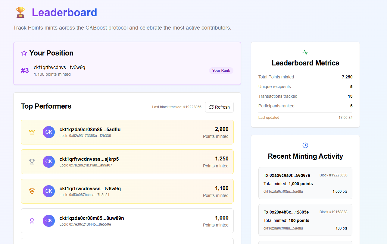 As mentioned previously, CKBoost is a community engagement and quest platform that issues rewards for completed campaign objectives. It is available on testnet, with the following features now live: