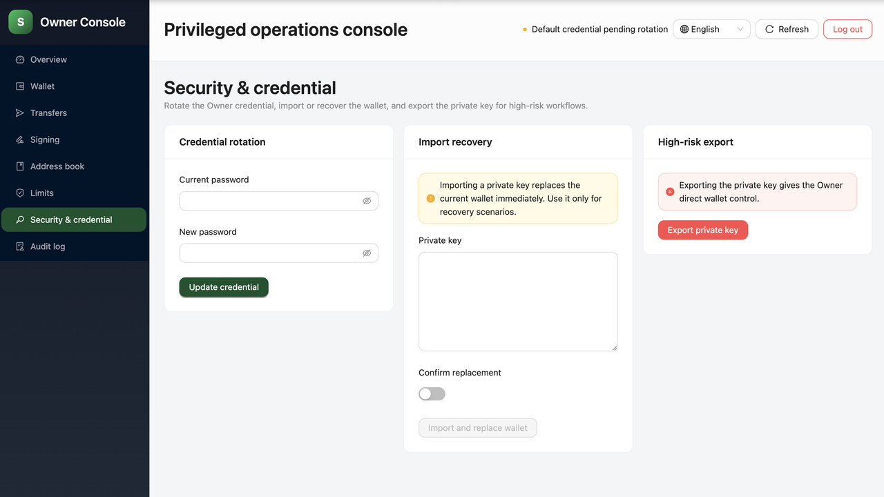 Unified Management Console (including operations such as credential rotation, wallet recovery, and private key export etc.)