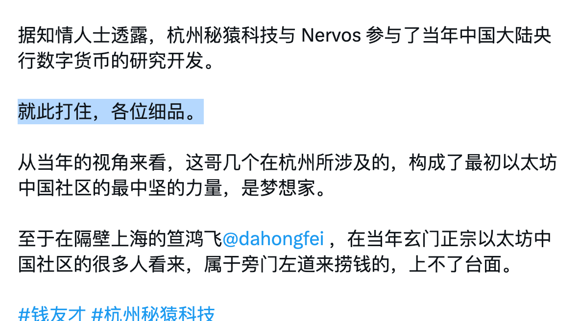 从他艾特那么多无关币圈的媒体来看,就是在乱扯