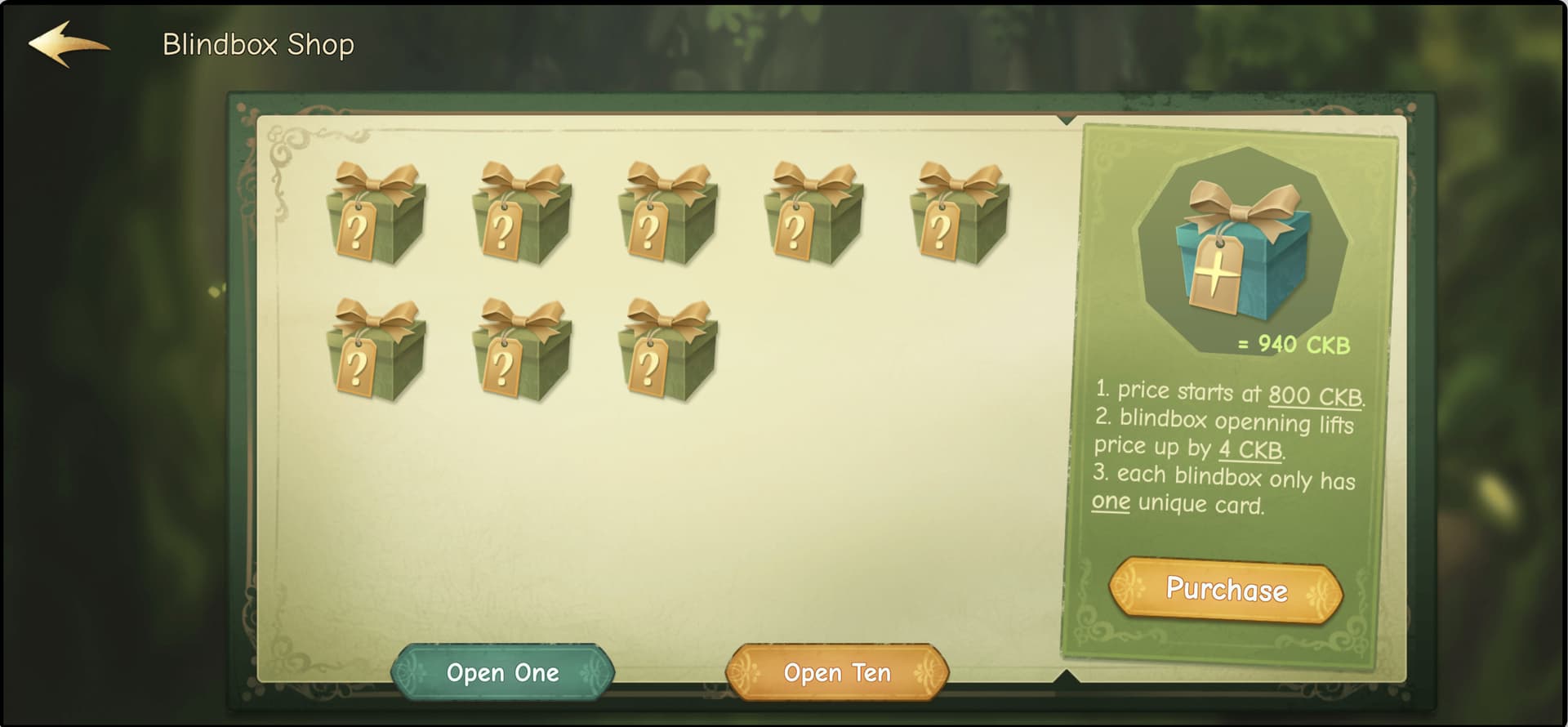 - Card blind box prices increase linearly based on the number of boxes opened, with prices only increasing, never decreasing